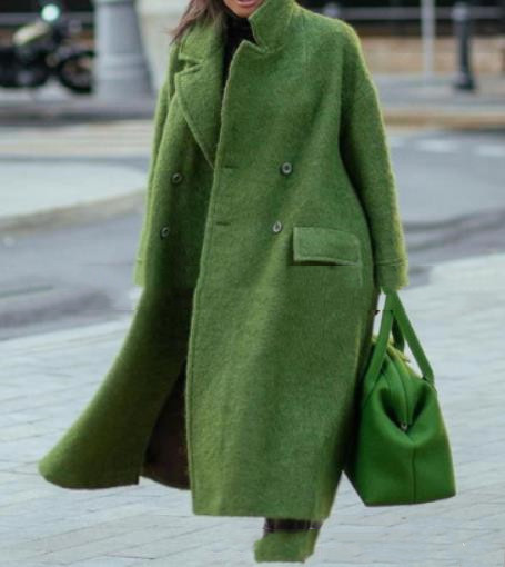 High-end Texture Temperament Commuter Lapel Loose Woolen Green Jacket