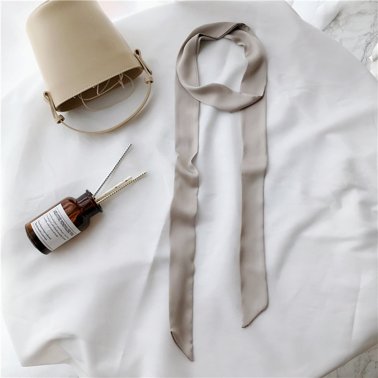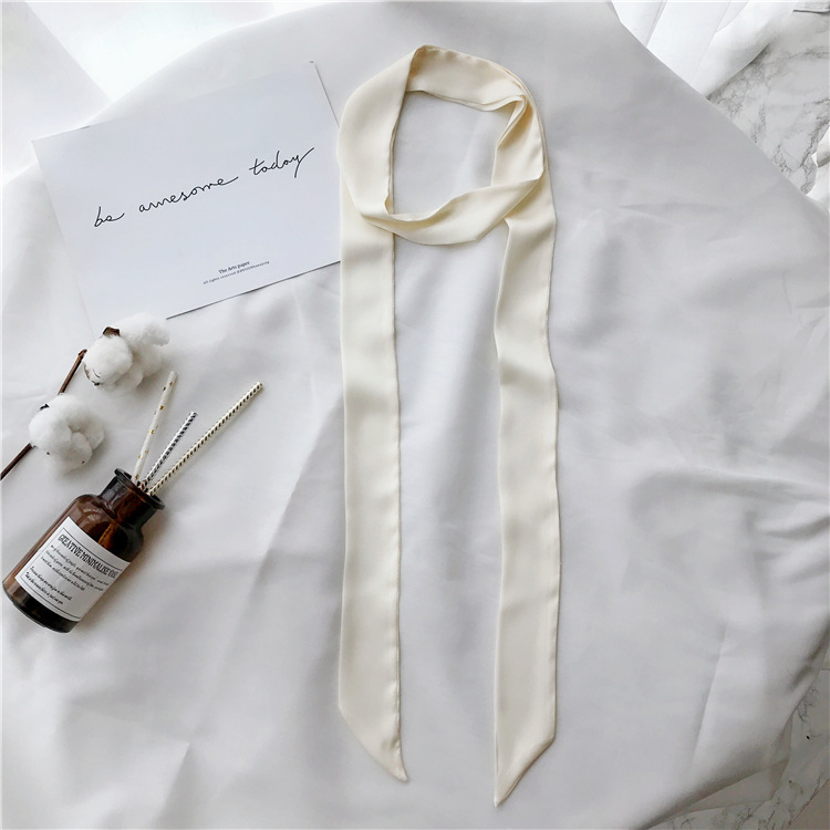 Silk Narrow Strip Silk Scarf Pure Color Wild Scarf