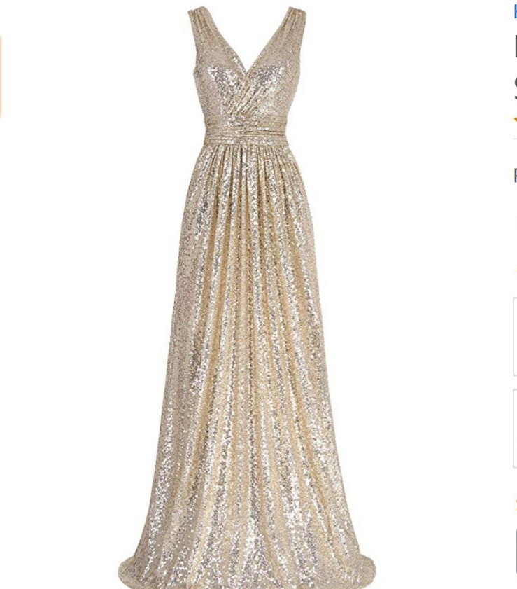 V-neck Slimming Long Sequin Formal Dress